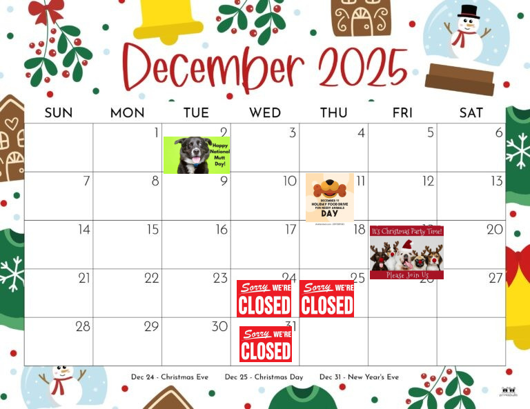 We woof you a Merry Christmas & a Meowy New Year!! Thank you for allowing us to take care of your fur family.